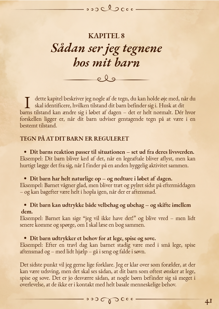 — både kropsligt, følelsesmæssigt og i barnets adfærd.